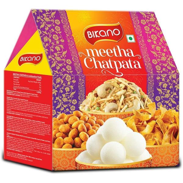 Bikano is known for making authentic, traditional, and delicious Indian snacks for several decades. Bikano Meetha Chatpata Assorted Gift Pack contains rasogolla, peanut ball, kaju mixture and crunchy munchy masala masti. This gift hamper is designed to add delight and happiness to your loved ones. Make any auspicious occasion fun and memorable with these sweet and savouries. Buy this product online today!
